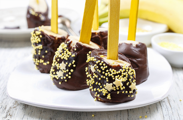 - Celupkan pisang yang telah beku kedalam larutan coklat, bisa diberi taburan meses, kacang cincang, dll.