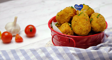 - Jika sudah, bentuk bulat dan bungkus keju mozarela dengan bahan tempe